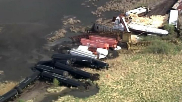 В Миннесоте поезд, в котором перевозили соляную кислоту, сошел с рельсов. Произошла утечка химикатов, сообщает CBS Minnesota.
