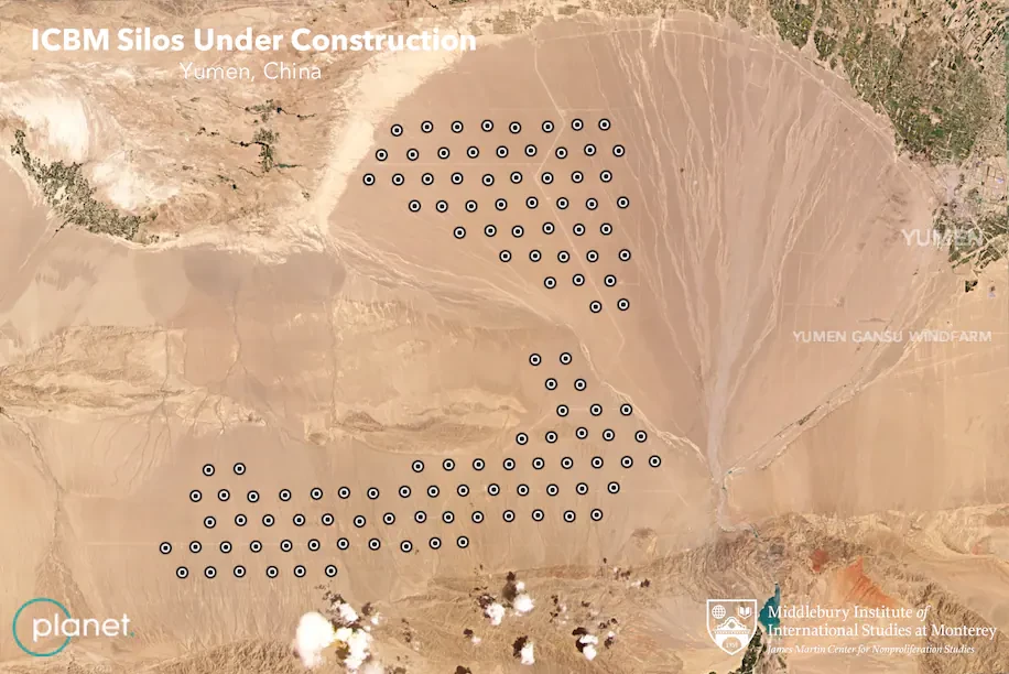 Исследователи, используя коммерческие спутниковые снимки, обнаружили 119 строительных площадок, где, по их словам, Китай строит шахты для межконтинентальных баллистических ракет