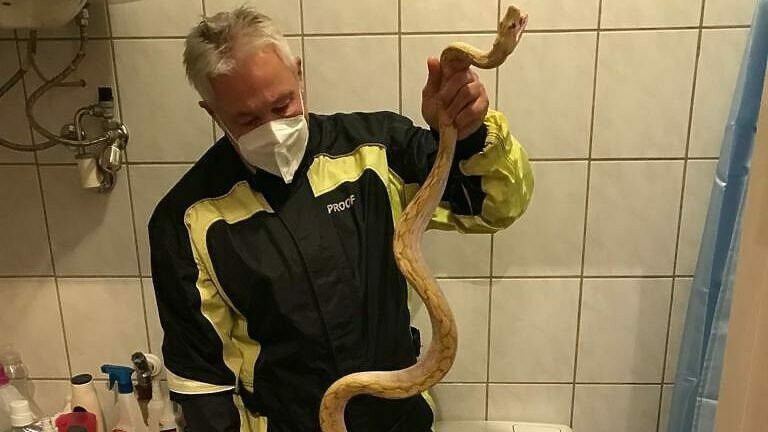 Перепуганный до смерти старичок вызвал полицию, которая привезла с собой эксперта по змеям. Операцию по извлечению питона из унитаза провел признанный виртуоз-специалист Вернер Штангл (Werner Stangl).
