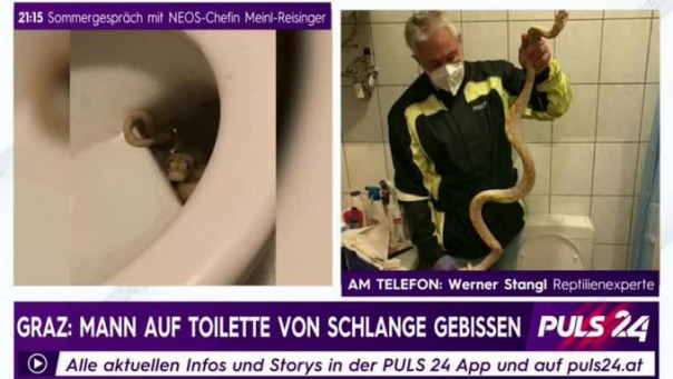 65-летний житель австрийского города Грац обратился к врачам с необычной жалобой. После сытного роскошного ужина пожилой австриец, прихватив газету "Кронен цайтунг", отправился в уборную комнату по большому и важному делу. Уединившись в тишине и покое и сев на унитаз, он почувствовал, что его гениталии оказались вдруг накрепко «чем-то зажаты». Он в ужасе вскочил — из очка унитаза на него лукаво и ехидно смотрел полутораметровый питон-альбинос. Рептилия была домашним питомцем его соседа.