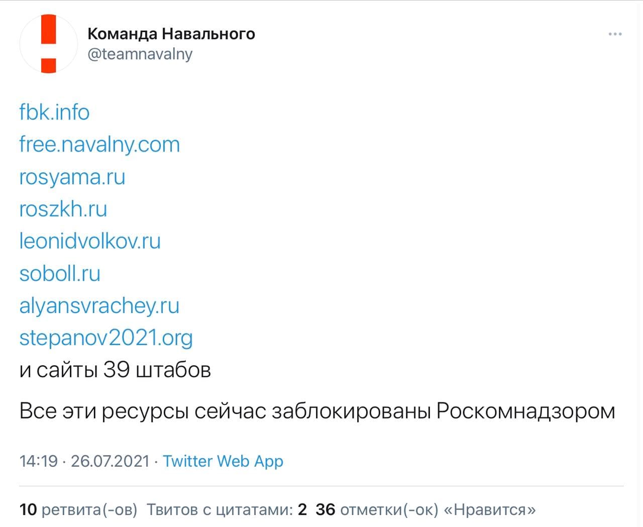 Роскомнадзор заблокировал сайт Навального и другие экстремистские помойки