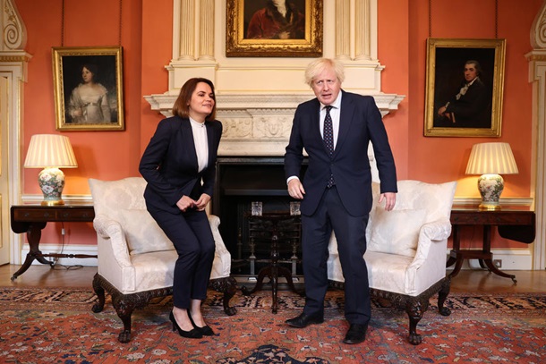 "Мы полностью на вашей стороне, очень поддерживаем то, что вы делаете. Мы преданы поддержке прав человека и гражданского общества в Беларуси… Я думаю, что мы были одними из первых, кто ввел санкции после угона самолета с Романом Протасевичем", – сказал Джонсон.