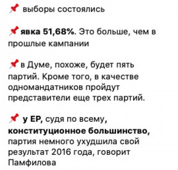 Отдельного внимания заслуживает прошедшая в Госдуму партия "Новые люди" (5,33%). Спасибо одному из кабинетов на Старой площади и семейно-медведевской "тусовочке", которые живут идеей либерастной фракции в ГД. Наблюдалась массированная агитация за "Новых людей" в соцсетях, под это дело была куплена целая Telegram-сетка, продвижением проекта занимались известные политтехнологи типа Минченко и Гращенкова.