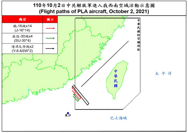 1 октября ВВС Народно-освободительной армии Китая (НОАК) направили к акватории Тайваня 38 самолётов. Источник