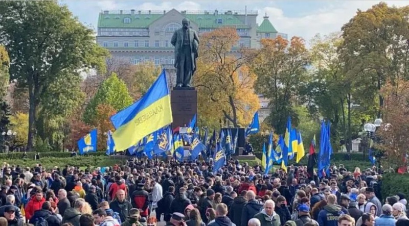 В Киеве радикалы и националисты провели марш в честь 79-й годовщины создания Украинской повстанческой армии, Дня украинского казачества и Дня защитника и защитниц Украины. Марш начался с опозданием, организаторы ожидали заявленного числа участников — 10 тысяч.