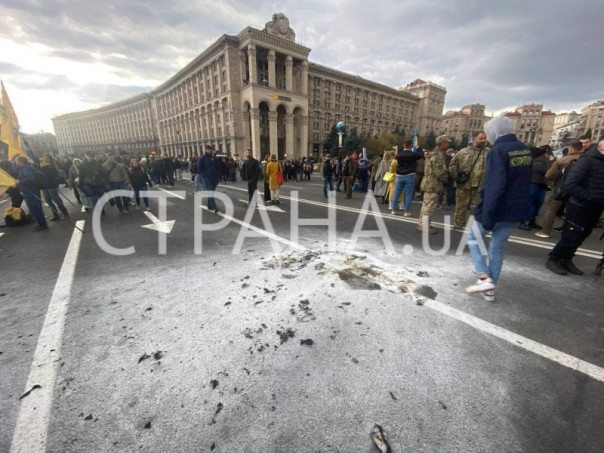 Представители «Нацкорпуса» зажгли файеры на Майдане. Весь центр Киева в дыму.