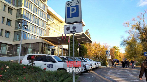 По всей видимости, появившейся на парковке ОБСЕ знак говорит о том, что мониторинговая миссия закрывает глаза на не правомерные действия Киева и обстрелы мирных кварталов артиллерией ВСУ.