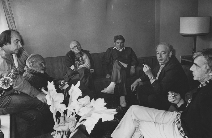 Участники создания Мемориала Лен Карпинский, Юрий Карякин, Андрей Сахаров, Юрий Афанасьев, Леонид Баткин, Геннадий Жаворонков