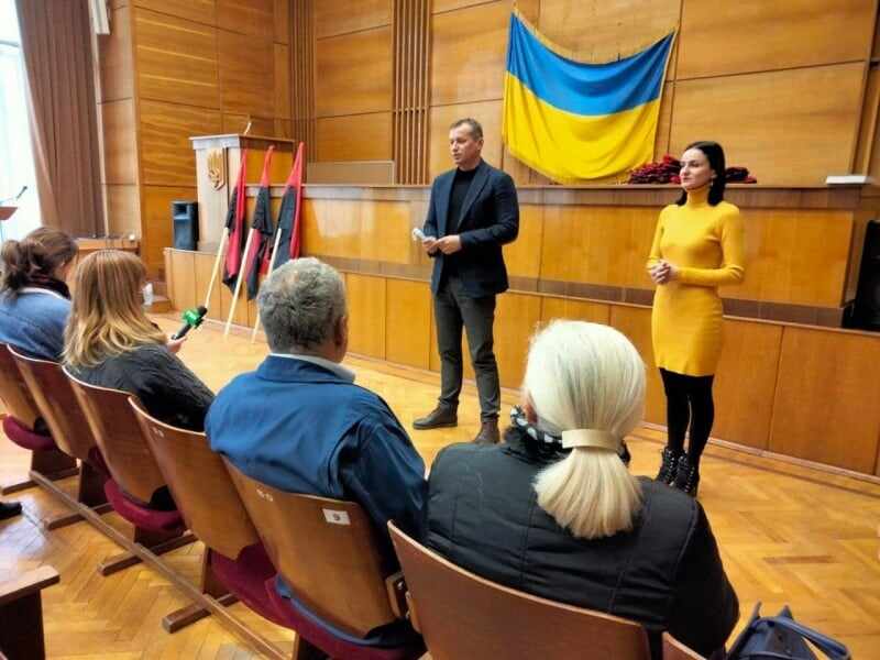 В Черновцах собрали директоров школ и вручили им красно-черные флаги ОУН*, которые они должны вывешивать на своих учебных заведениях