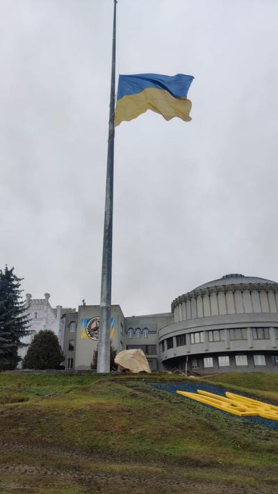 В украинских Сумах ветер оторвал синюю половину самого большого городского флага Украины. Инцидент произошел накануне Дня достоинства и свободы, 20 ноября.
