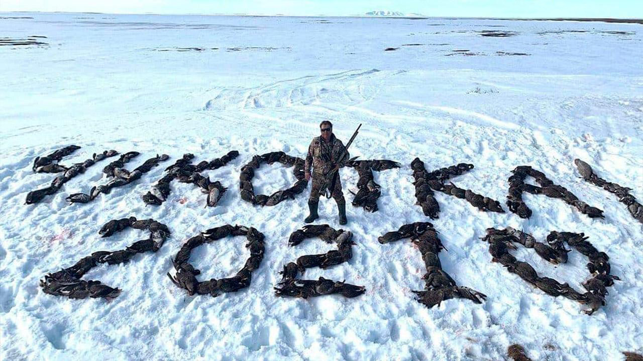 Напомним, что минувшей весной в Сети появилось фото с охотником. В кадре мужчина стоит на фоне надписи «Чукотка 2021», выложенной более чем сотней тушек убитых гусей. После публикации снимка полиция начала проверку, в ходе которой было установлено, что тем охотником был депутат Магаданской городской думы Александр Крамаренко. Против него было возбуждено уголовное дело об отстреле 180 гусей с ущербом свыше 700 тысяч рублей. Источник