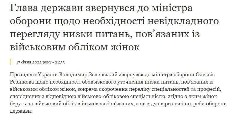 То есть, несмотря на массовые протесты и петиции, Зеленский не будет отменять обязательный воинский учёт для украинок. Источник