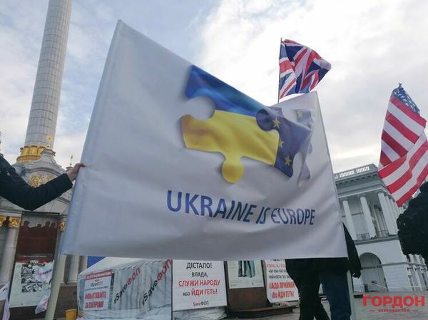 В воскресенье, 6 февраля, живущие в Киеве иностранцы провели акцию в поддержку Украины на фоне угрозы очередного "вторжения" России. Колонна участников акции прошла с флагами западных государств от парка имени Шевченко до Майдана Незалежности