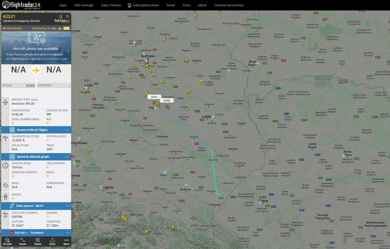 Группа украинских транспортных самолётов в эти минуты удаляется от границы в западном направлении и уже находится в воздушном пространстве Польши.