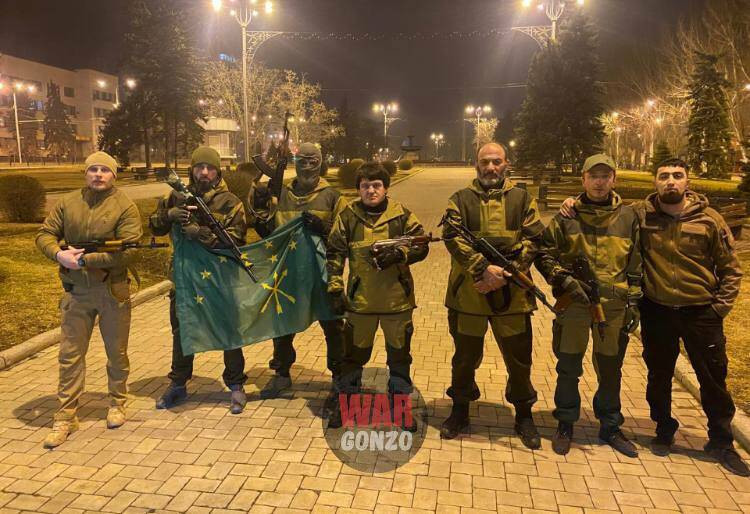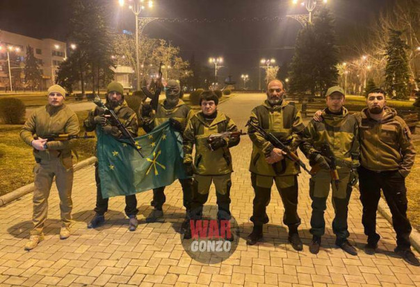 В ДНР прибывают добровольцы с Кавказа.На фото основатель легендарной интербригады «Пятнашка» Ахра «Абхаз» Авидзба вместе с боевыми товарищами, которые приехали поддержать донбасское наступление из кавказских республик России (и не только)
