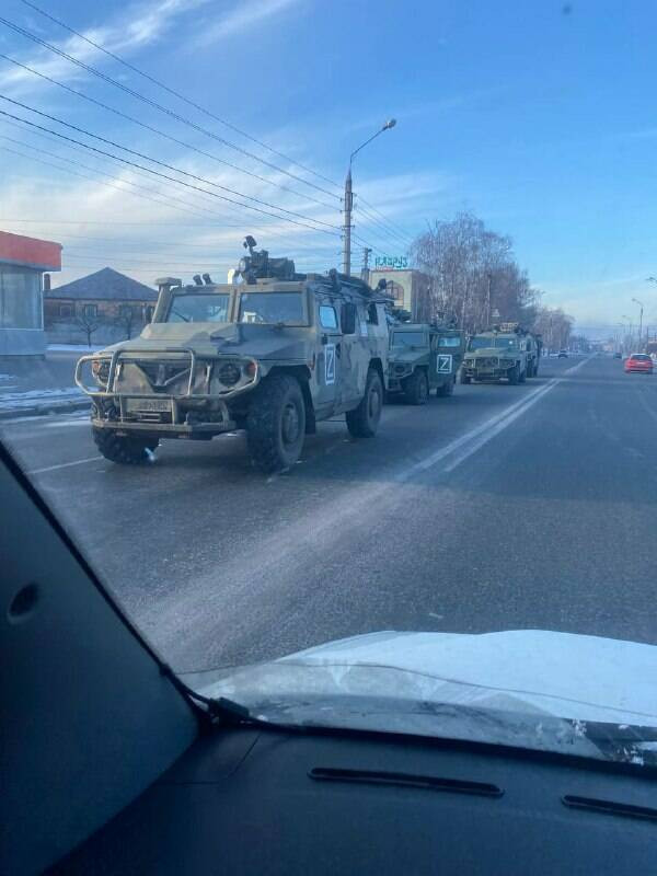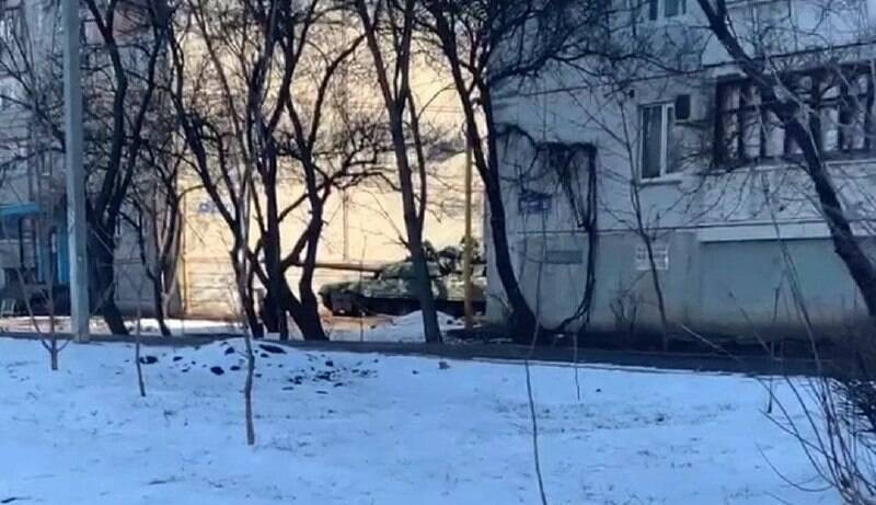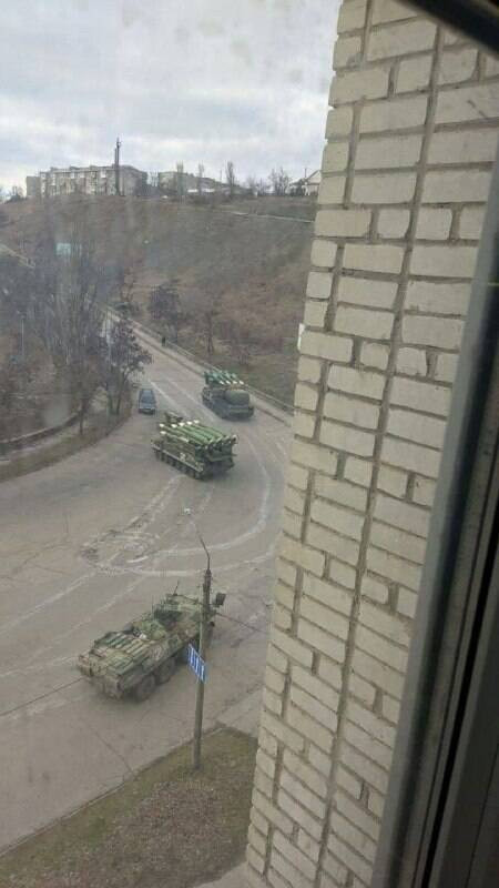 Очевидцы выкладывают кадры с военной техникой в городе.