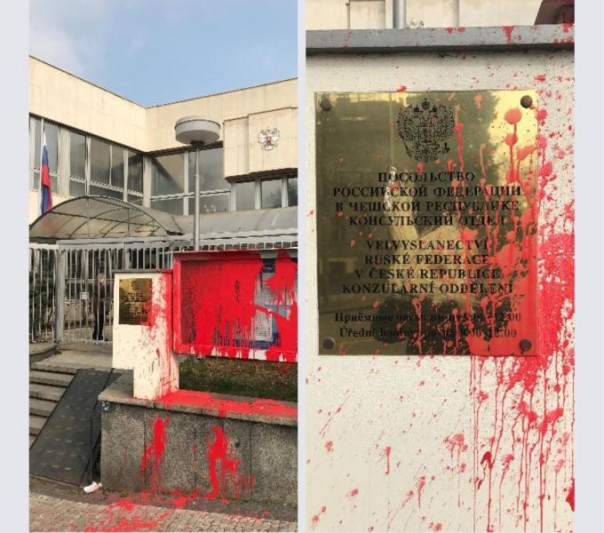 Российское консульство в Праге облили красной краской