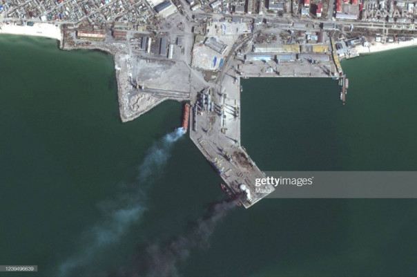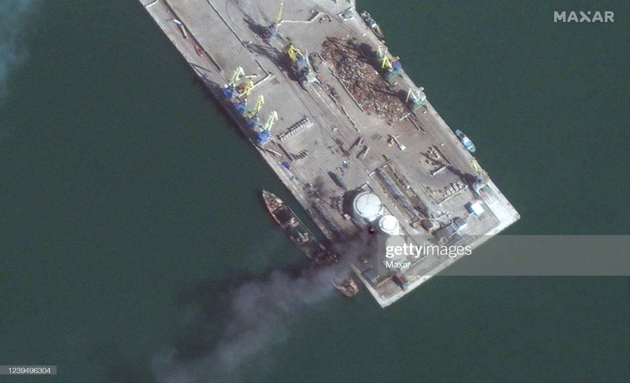 * Спутниковые снимки пирса порта Бердянска. Как мы и писали, видно, что взорвалась цистерна, а потому уже огонь перекинулся на БДК, где что-то начало детонировать.