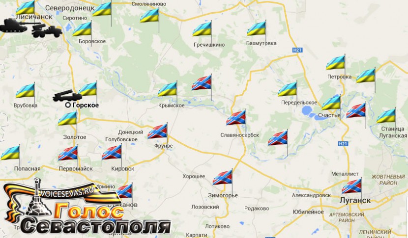 По данным разведки, по трассе из Лисичанска в сторону Донецка (ДНР) было отмечено перемещение многочисленных колонн военной техники, в которых шли тягачи, на платформах которых находятся танки, боевые машин пехоты, самоходные артиллерийские установки и системы залпового огня, а также грузовики с личным составом и боеприпасами. В район населенного пункта Горское было отмечено прибытие тяжелой техники, в том числе, РСЗО "Смерч".