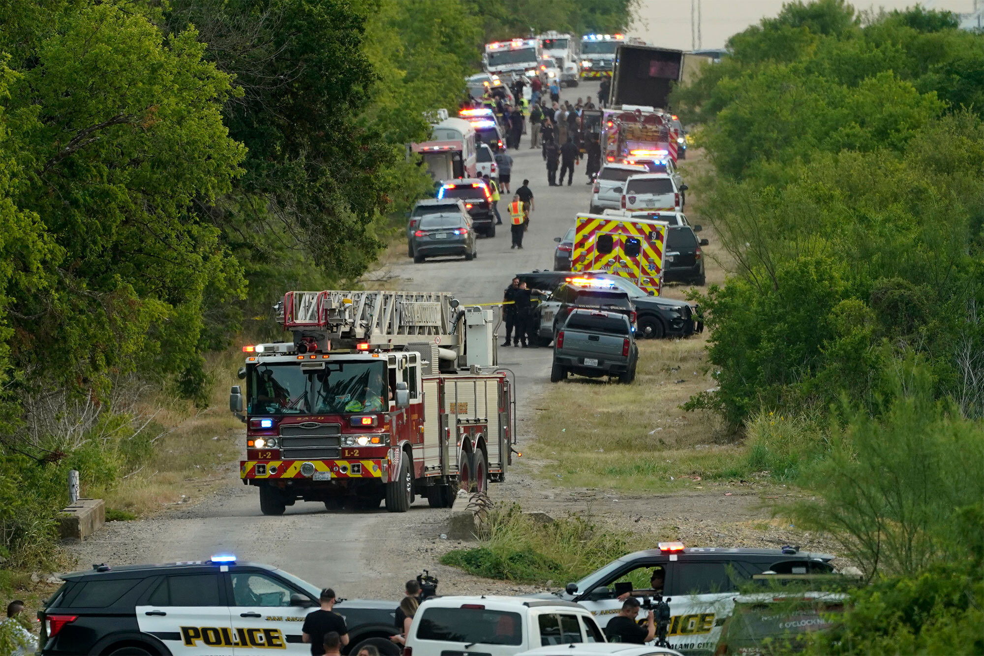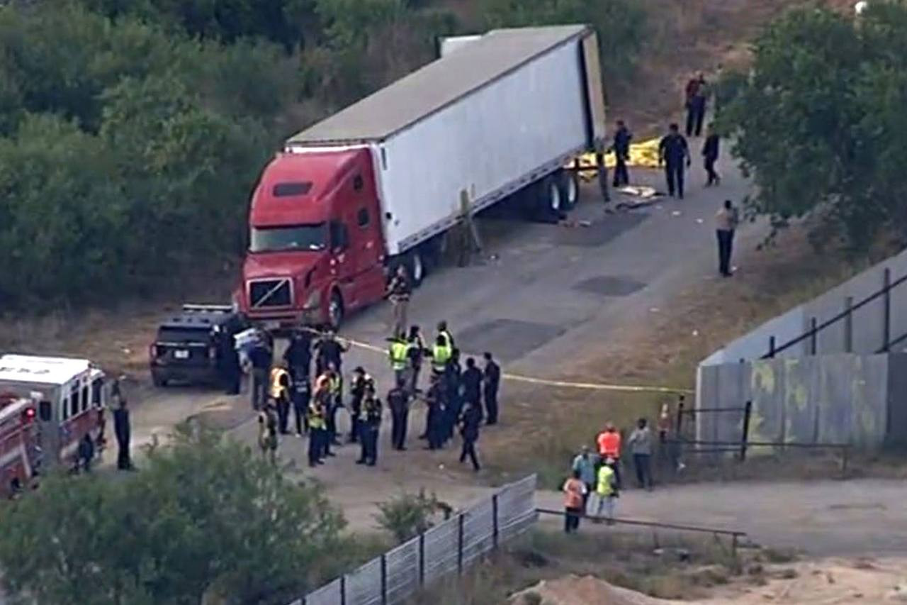 В прицепе техасского тягача обнаружены «гоуды тел». Подтверждено, что 46 мигрантов погибли «из-за теплового удара», а выжившие описываются как «горячие на ощупь» в одном из самых смертоносных случаев торговли людьми в Америке.