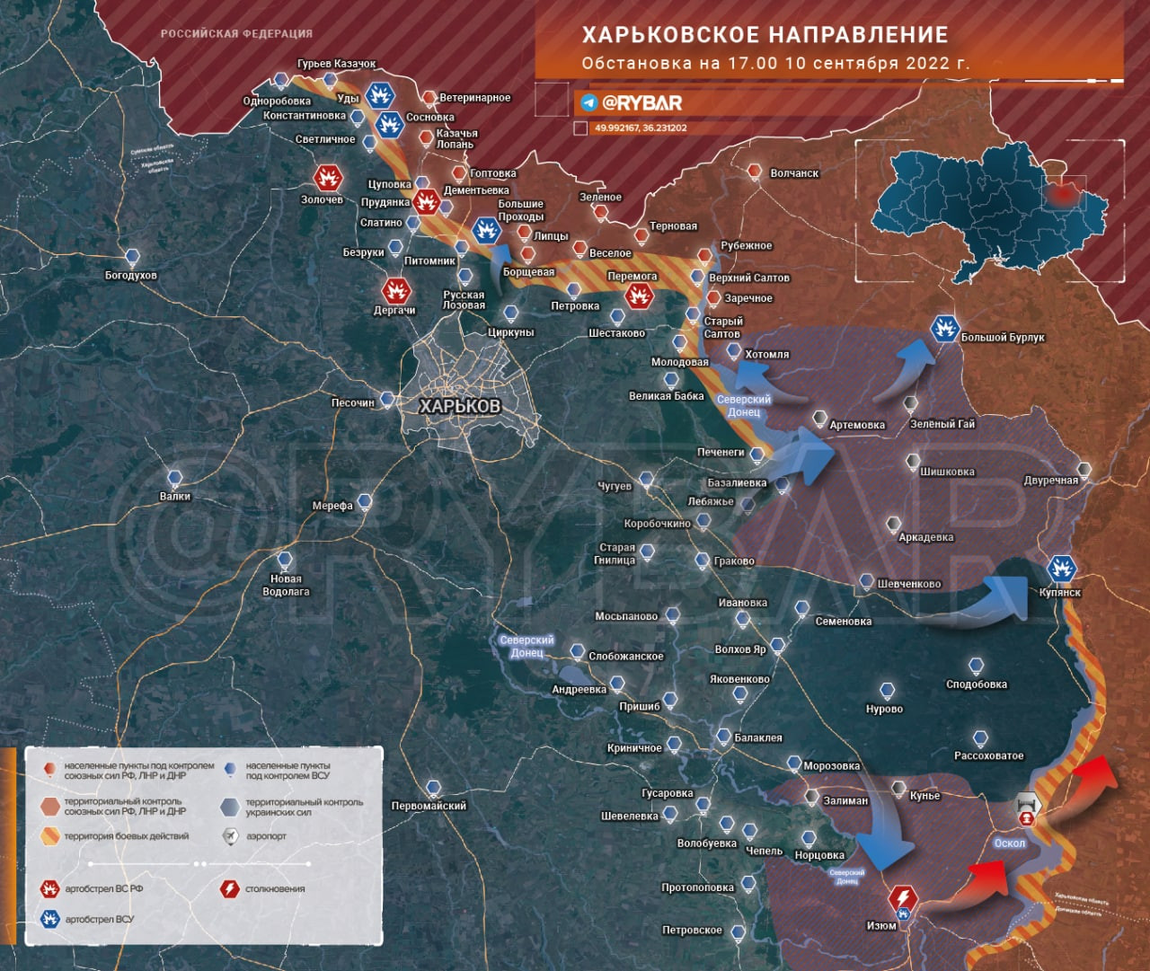 Обстановка на Харьковском направлении по состоянию на 17.00 10 сентября 2022 года