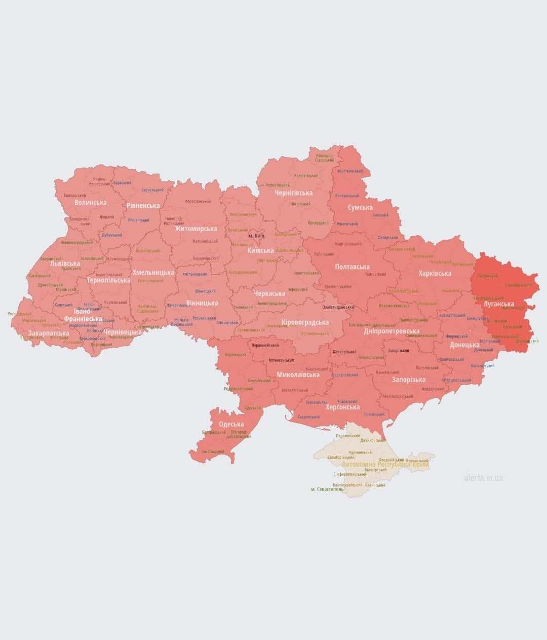 Воздушная тревога объявлена на всей территории Украины, сообщают украинские СМИ.