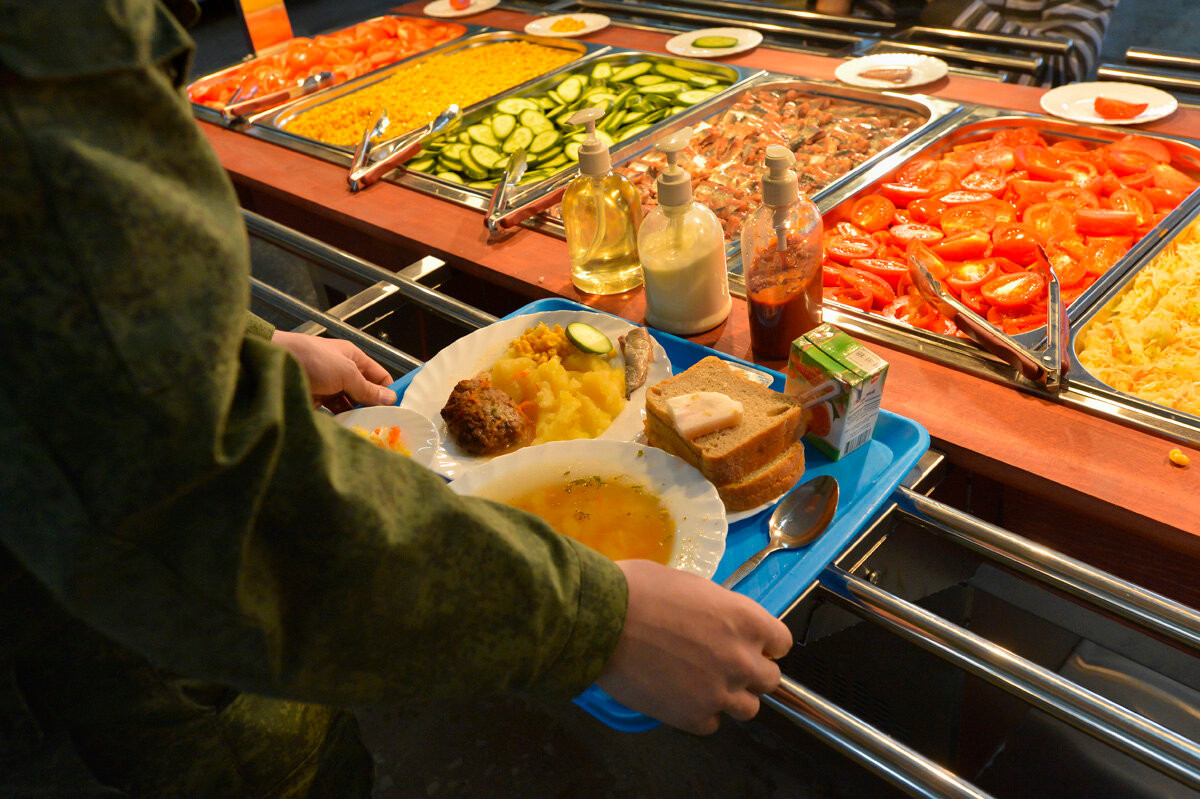 Также трехразовое питание ждет солдат и непосредственно в воинских частях. Стоит отметить, что его организация значительно отличается от той, что была в советское время и 1990-е годы. Сегодня армейцев кормят специальные комбинаты, которые организовали питание по принципу «шведского стола», когда можно выбрать первое и второй из нескольких вариантов. За день они получают до 4,4 тысячи калорий – это один из самых калорийных рационов для солдат во всем мире. Для них готовят закуски, супы, гарниры, мясные и рыбные блюда. А в салат-баре они могут выбрать нарезки овощей и соусы по своему вкусу. Зимой в меню солдат добавляют сало, чеснок и витамины.