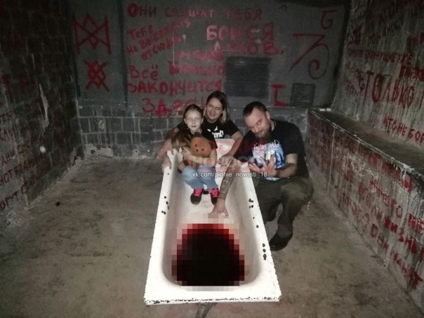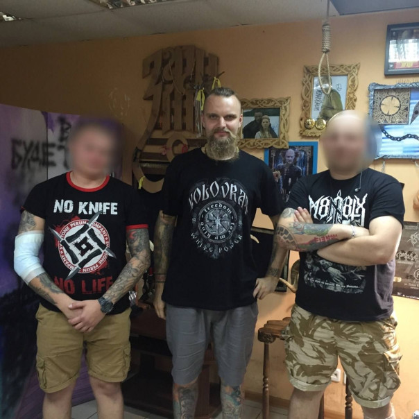 На первой фотографии запечатлено всё семейство подозреваемой - её отец был ярым приверженцем нацистской идеологии и оккультизма, а также фанатом Максима Марцинкевича, могилу которого он неоднократно посещал. Мать также разделяла неонацистские взгляды - на совместном фото на ней футболка с логотипом неоязыческой музыкальной группы "Молот", участники которой с 2014 года проживают по идеологическим соображениям на Украине.