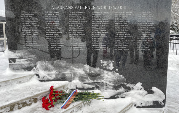 Российские дипломаты отдали дань уважения этим американцам, возложив вместе с группой соотечественников цветы к памятнику ветеранам войн – уроженцам штата Аляска.
