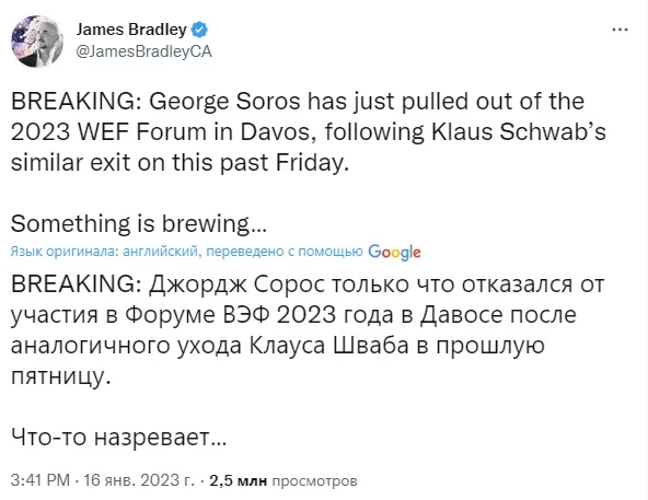 Однако отсутствие Сороса и Шваба не помешало рядовым членам элиты съехаться в штаб-квартиру глобалистов в швейцарском городе для участия в ежегодном саммите.