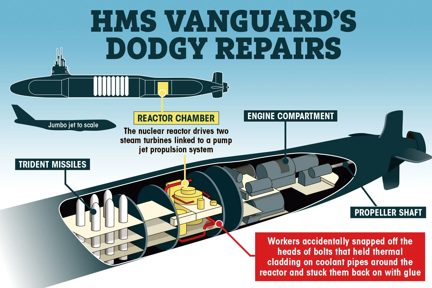 The Sun узнала о ремонте болтов на подлодке Британии с помощью суперклея