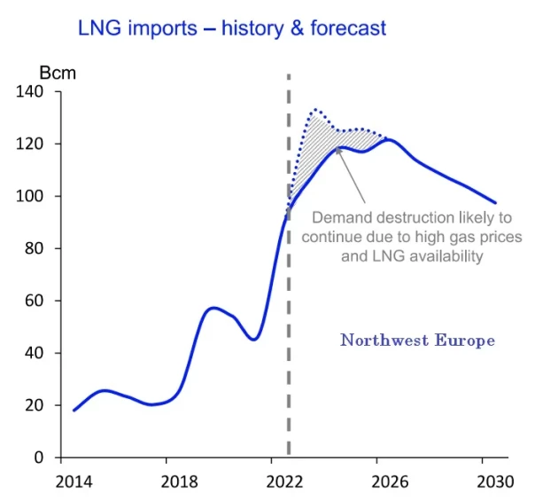 Это импорт СПГ в северо-западную Европу, в которую традиционно входят Германия, Дания, Швеция, Нидерланды, Бельгия, Бенилюкс и Франция.