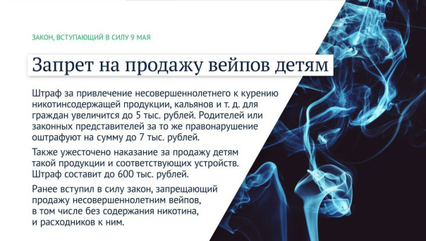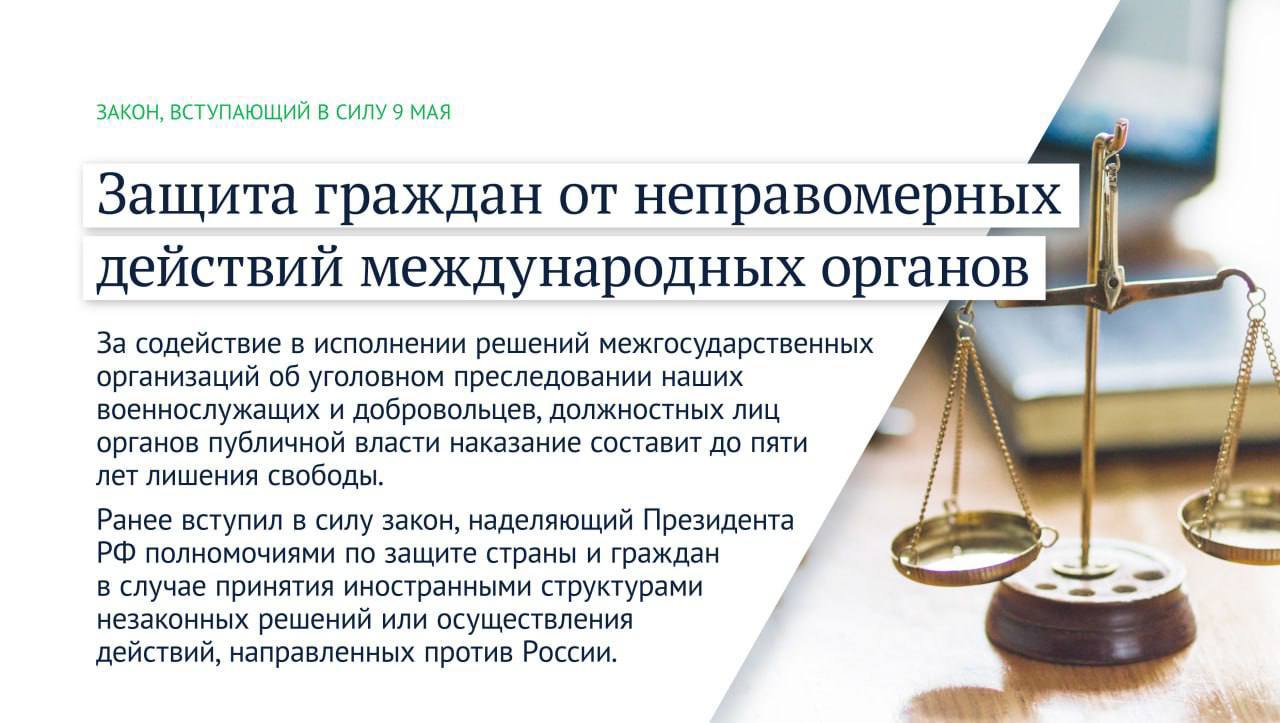 Среди них закон о запрете продажи вейпов несовершеннолетним, а также вступит в силу закон, который вводит ответственность за содействие в исполнении неправомерных решений международных органов об уголовном преследовании наших военнослужащих и добровольцев, а также должностных лиц органов публичной власти. Источник