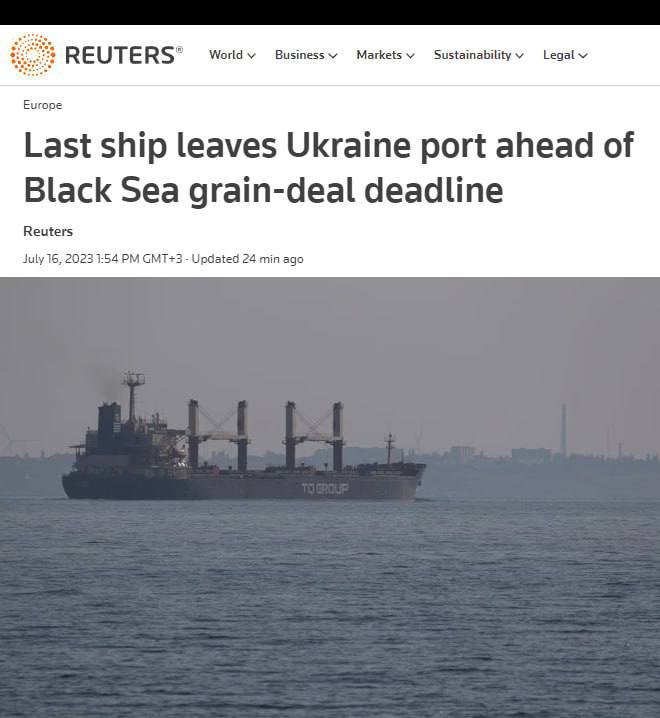 Reuters: Порт Одессы покинуло последнее перед завершением зерновой сделки судно — завтрашний день может оказаться последним для украинского зерна в Турции