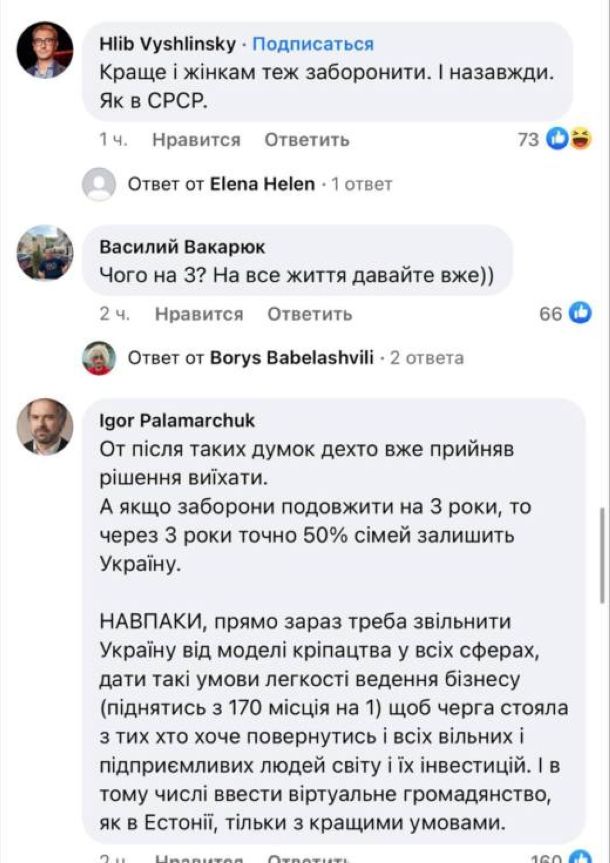 «Одним махом открыть границы, как это было до 24.02.22 — это значит потерять плюс миллион. Сейчас за границей около 7 млн. человек, вернется половина. Все те, кто пишет о комплексных мерах по возвращению — лукавят. Никаких реальных комплексных мер нет и не будет. К сожалению», — написал он.