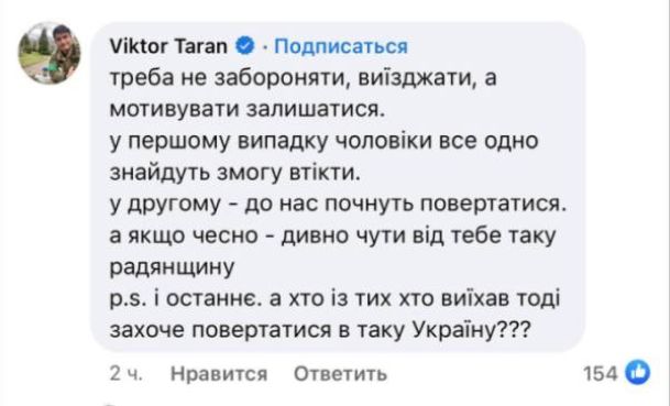 Идея Денисенко вызвала бурное обсуждение в сети. Ему указали, что он идиот, и напомнили, что это противоречит политике киевского режима — стремление в ЕС и НАТО, безвиз.