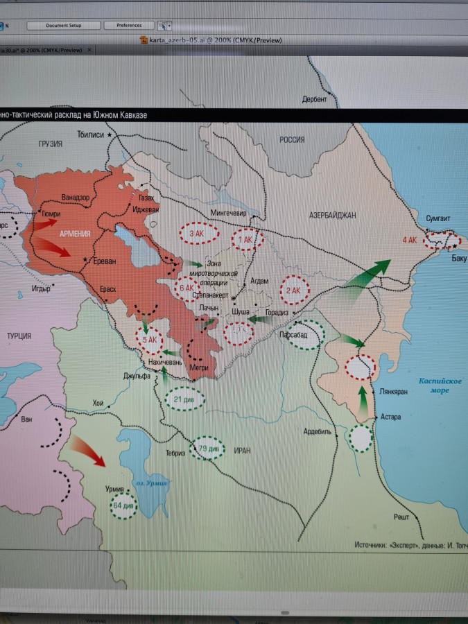При этом значительная часть названного потенциала оказалась сосредоточена на узком участке пресловутой 100-километровой границы с НКР. Прежде всего, все эти многочисленные войска концентрировались на правом восточном фланге: напротив узкого – и ключевого, – Горадизского прохода. В случае необходимости, они могли быстро форсировать Аракс и, перекрыв данное дефиле, окружить прорвавшиеся азербайджанские войска усиленного 2-го АК в Геянской степи.
