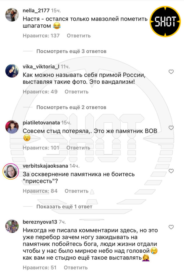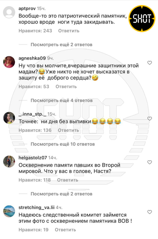 Подписчики конкретно захейтили "балерину всея Руси" и потребовали извиниться за осквернение памяти лётчиков, которые отдали свою жизнь за мирное небо над головой. А в заявлении в МВД попросили привлечь её к ответственности. Полиция проводит проверку.