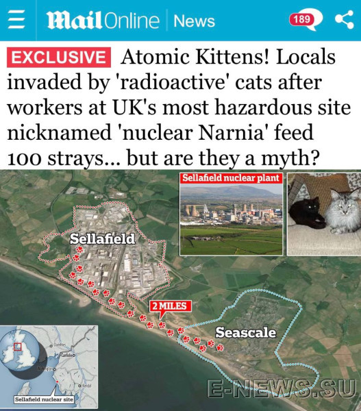 Стая диких кошек значительно выросла после того, как рабочие "Селлафилда" кормили их отходами и десятилетиями укрывали под теплом гигантских паровых труб. Местные протестующие раскритиковали руководителей объекта за то, что они поставили под угрозу близлежащую деревню Сискейл, расположенную в трех милях от них, сообщает РИА Новости.