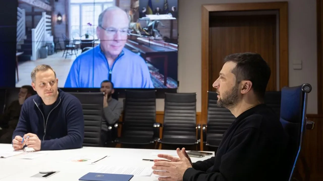 Владимир Зеленский проводит видеоконференцию с генеральным директором BlackRock Ларри Финком