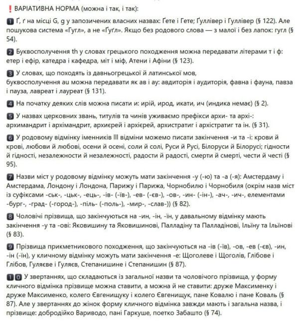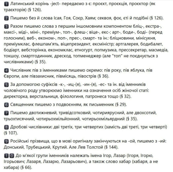 Теперь необходимо говорить и писать согласно новым правилам, которые она обнародовала, а также скинула ссылку на сайт Минобразования. С полным перечнем новых норм можно ознакомиться в соответствующем документе, опубликованном и НАНУ.