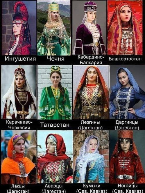 Национальные женские одеяния народов России исповедующих ислам. Одежды типа "почтовый ящик с прорезью" не наблюдается