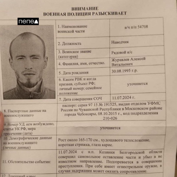 Местные паблики также публикуют появившуюся ориентировку на некоего Алексея Журавлева 1995 года рождения.