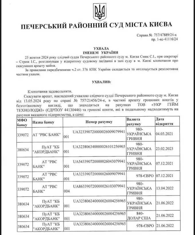 Решение касается снятия ареста с 65 миллионов долларов одного из онлайн-казино, которые уже были переданы в АРМА как «российские деньги» и направлены на нужды ВСУ. На них были приобретены ОВГЗ.