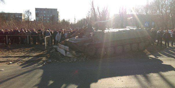 Жители Константиновки переворачивают автомобили украинских силовиков, жгут шины и казармы