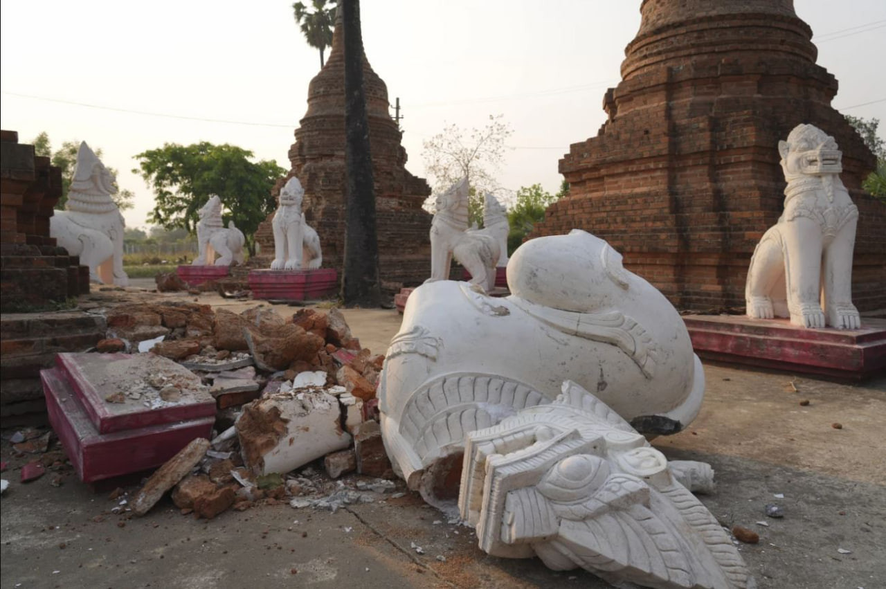 Разрушена главная буддийская святыня пагода 11 века Шве Сар Ян в штате Мон. В Пиндайе, штат Шан, рухнули ступы, и так далее. Пока не ясно, поврежден ли объект Всемирного наследия ЮНЕСКО Баган.