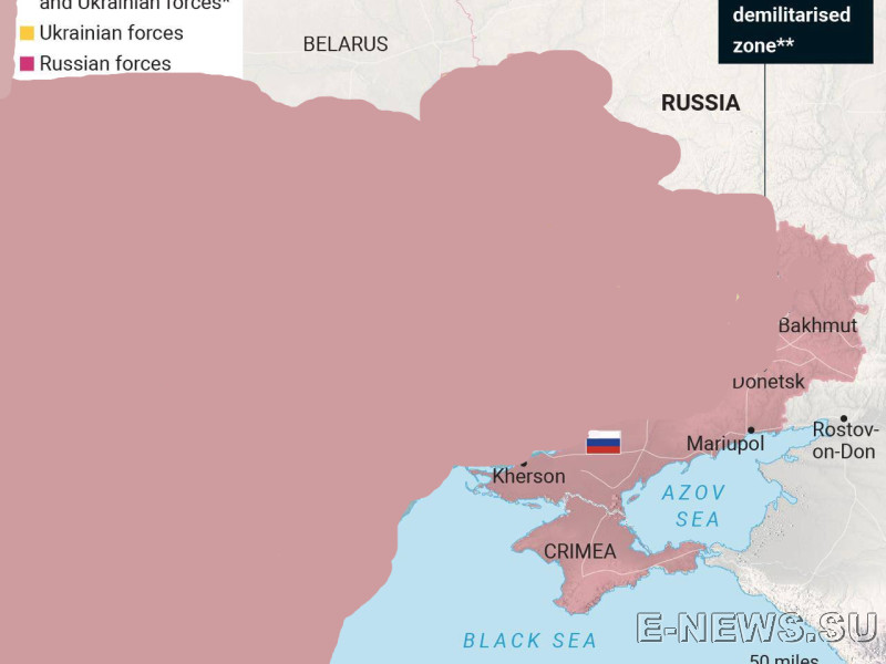 Они могут дислоцироваться к западу от реки Днепр, которая служит «серьезным препятствием», выразил уверенность Келлог, и предложил создать демилитаризованную зону вдоль нынешней линии соприкосновения, глубина буферной зоны которой составит 15 км с каждой стороны. Он ожидает, что нарушения режима прекращения будут, «потому что они бывают всегда», но это можно «легко контролировать».