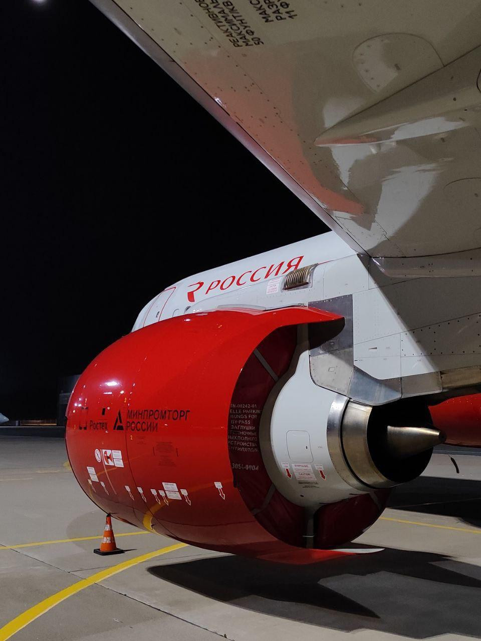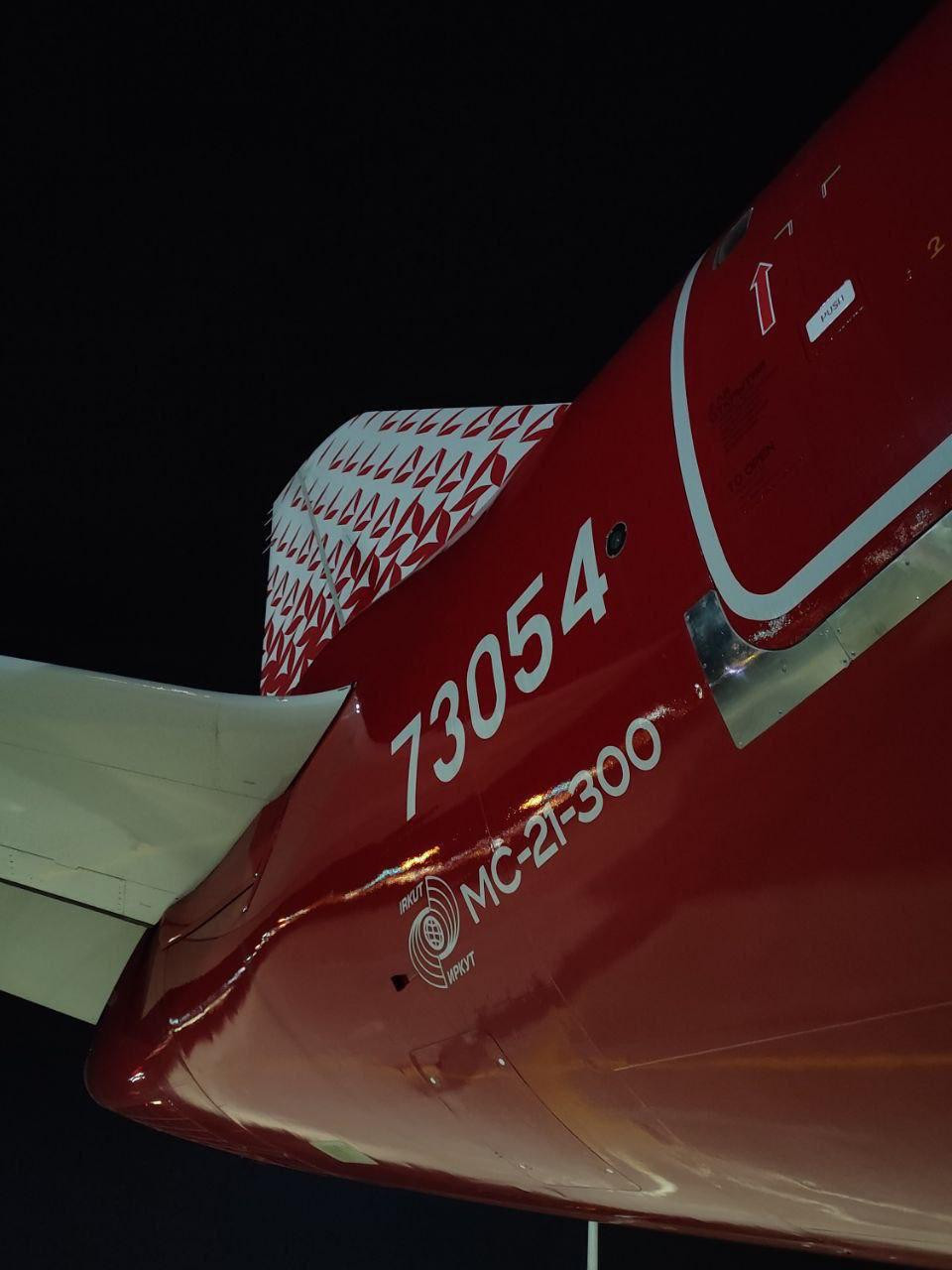 Первое появление новейшего российского лайнера МС-21 в ливрее авиакомпании «Россия» в аэропорту Пулково