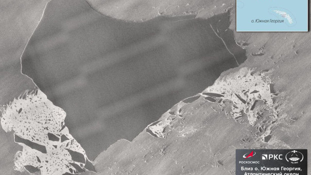 Фото было сделано космическим аппаратом "Кондор-ФКА". На нем изображены дрейфующие в Атлантическом океане неподалеку от острова Южная Георгия фрагменты айсберга.