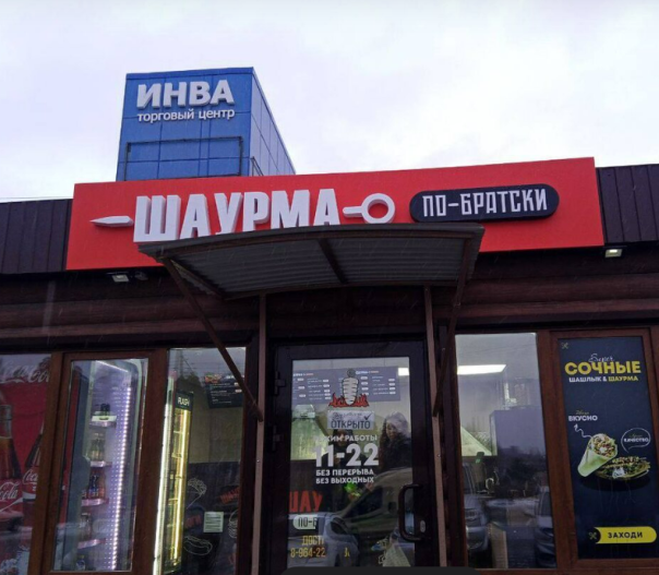 Восточная предпринимательская жилка нашла выход! Заведение просто сменило вывеску на пафосное и ироничное «Шаурма по-братски» и номинального владельца.